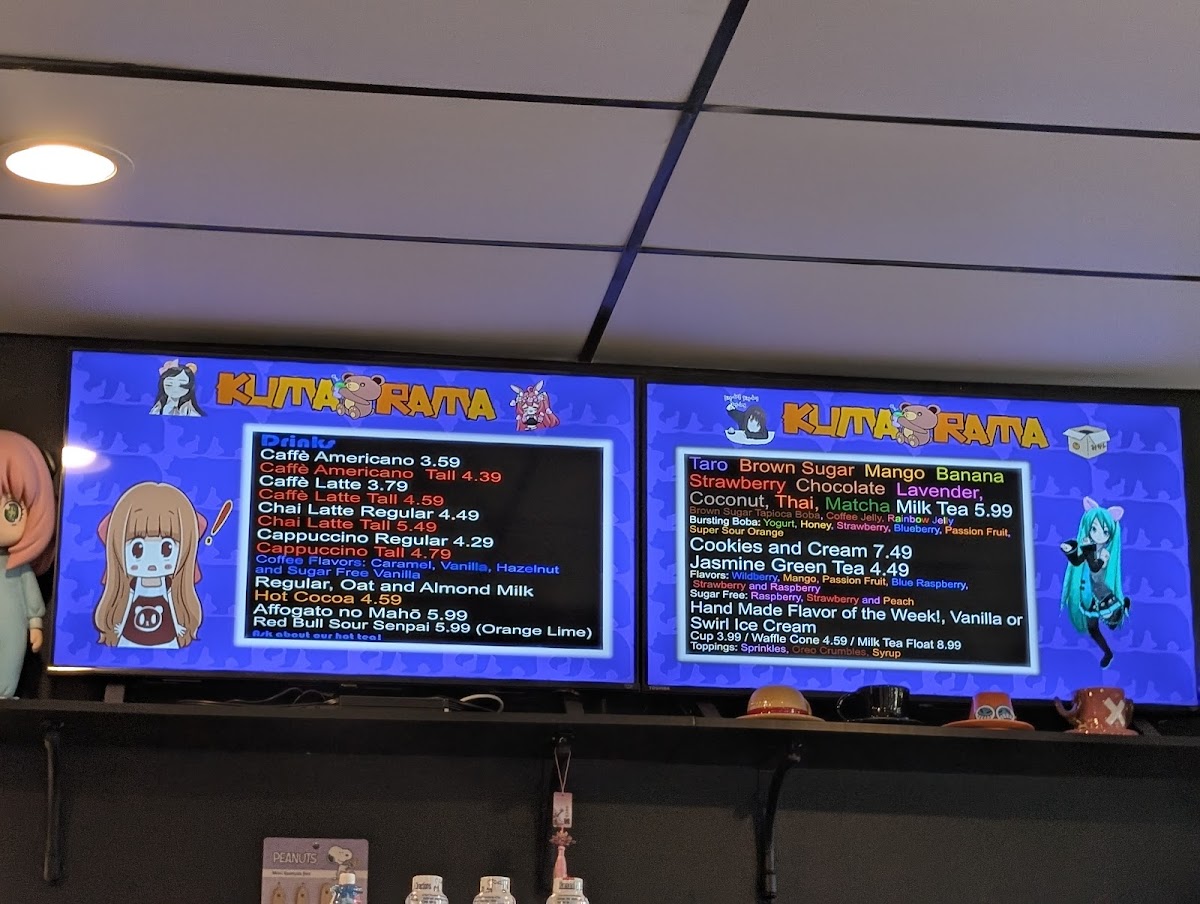 Kumarama Anime Store and Cafe Menu
