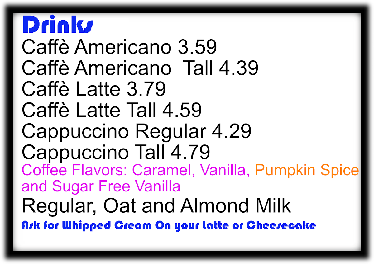 Dancing Bear Cafe Menu
